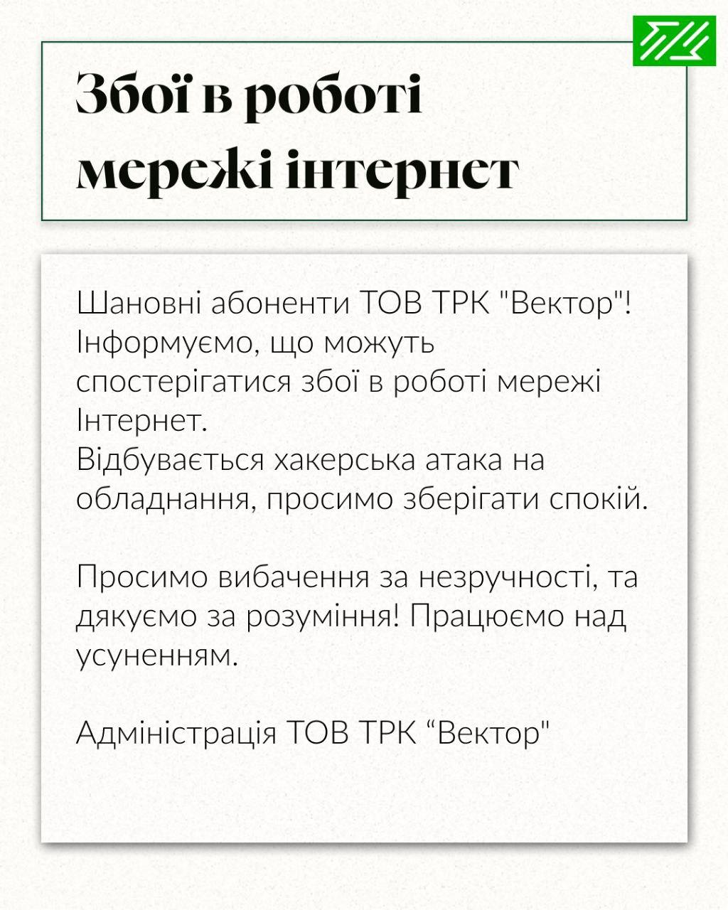 Шановні абоненти ТОВ ТРК "Вектор".